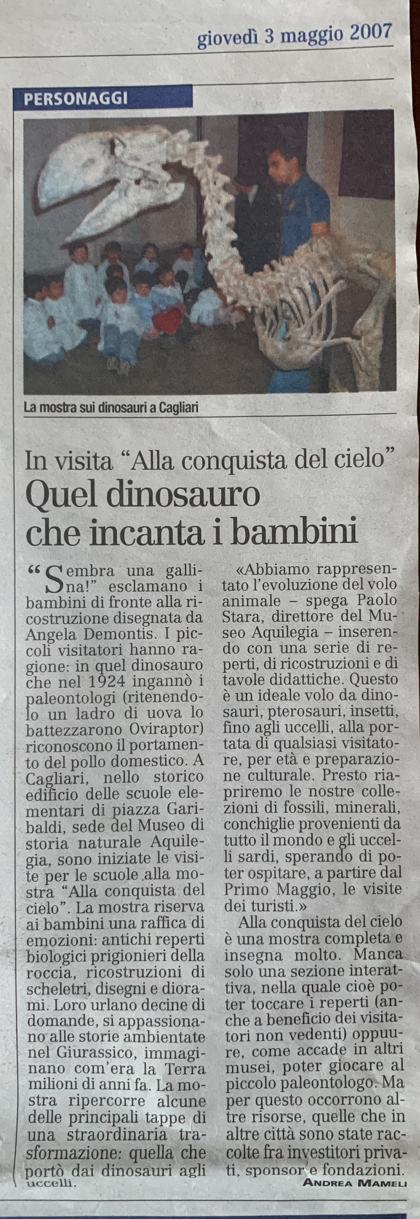 Quel dinosauro che incanta i bambini (L'Unione Sarda, 3 maggio 2007)